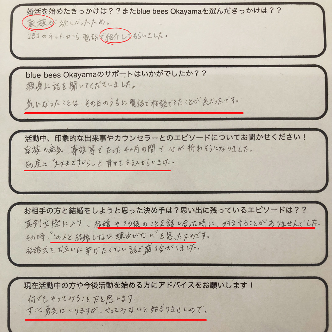 40代女性 M様 活動期間2ヶ月半・交際期間2ヶ月・blue bees史上最短!! 初めてのお見合いした男性と、初日から意気投合して、あっという間にご成婚☆会員さまの親しみやすさと安心感が、お見合いの時から全開だったよう […]View More